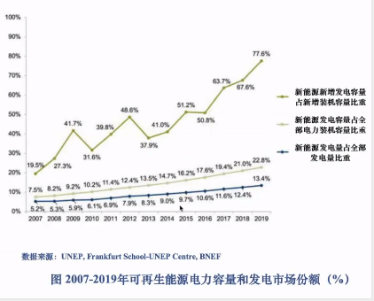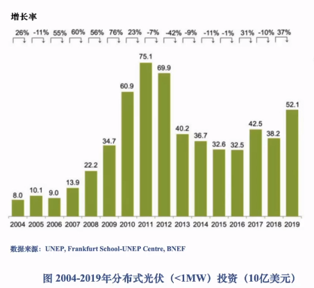 2019年中國太陽能領(lǐng)域投資下降33%, 至257億美元,為2012年最低水平,新增規(guī)模放緩,容量單位投資下降是主因。日本光伏投資繼續(xù)小幅下降7%至136億美元。韓國太陽能發(fā)電中75%是1MW以下的分布式光伏項目。